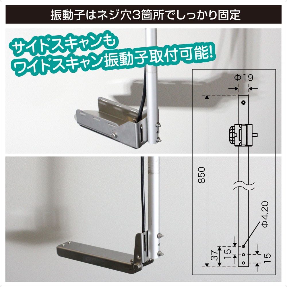 フィッシュセンサーアーム先端には3箇所のネジ穴があり、ワイドスキャン・サイドスキャン振動子も取付けることができます。