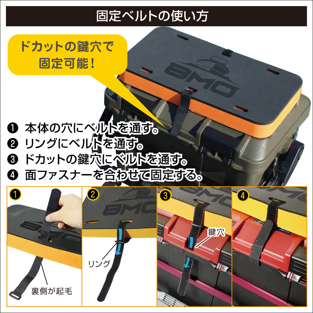 ・柔軟性と弾力性に富んだクッション性の高いEVA素材を採用。長時間の釣行でお尻の負担を軽減する抜群の座り心地を実現しました。